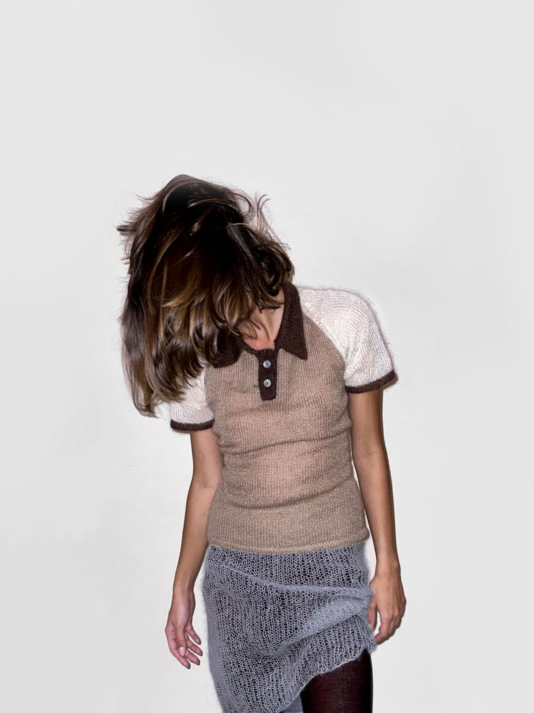 kid silk mohair polo knit shirt